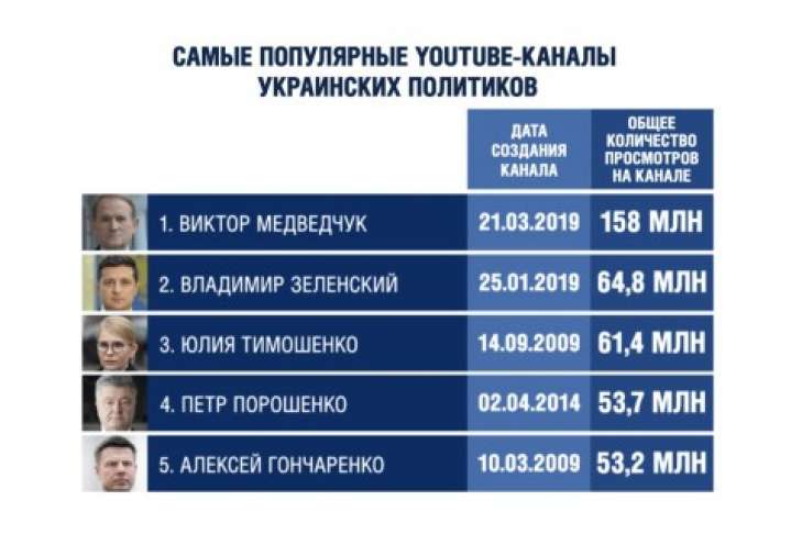 Отметим, ни один другой действующий или бывший депутат Верховной Рады, президент или член правительства не может похвастаться такой большой аудиторией в YouTube, как Медведчук.