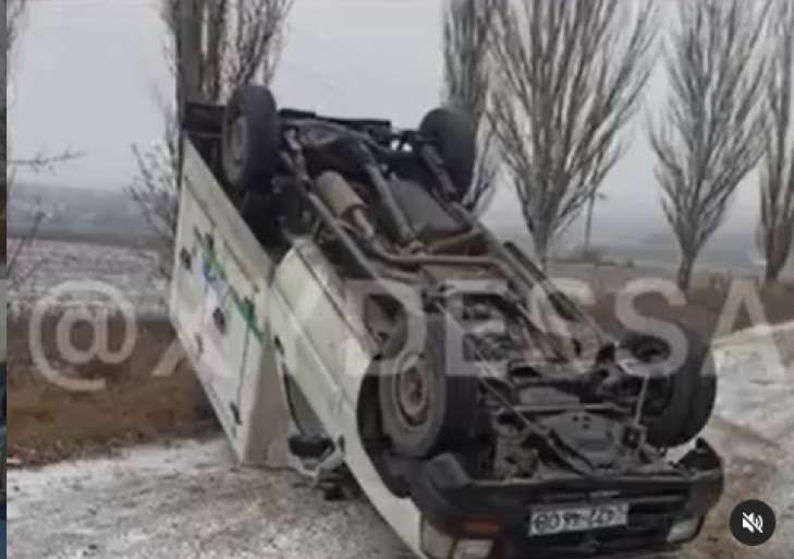 Одно из авто лежит перевернутое на обочине. Авария произошла возле Таировского кладбища.