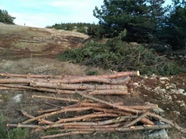 В заповедной зоне Ай-Петри на территории временно оккупированного Крыма под видом строительства "газопровода" вырубают лес.