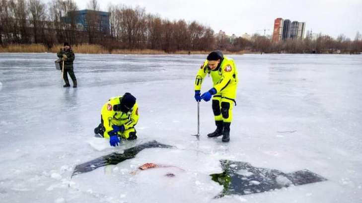 В Киеве спасателям пришлось изо льда вырезать тело утопленника.