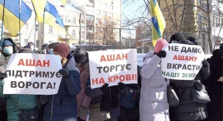 У п'ятницю, 19 лютого, під посольством Франції в Києві пройшла акція проти захоплення української землі компанією Ашан. Учасники акції прийшли під посольство з вимогою зупинити тиск на українські суди і Агентство по розшуку і менеджменту активів (АРМА).