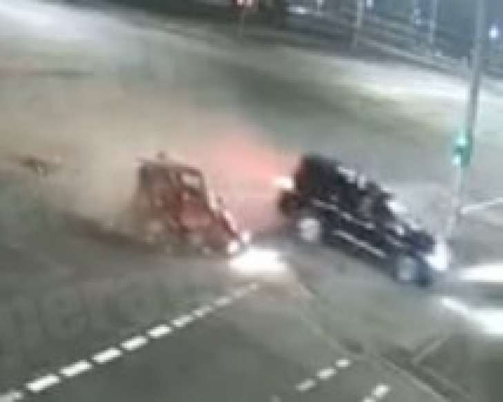 На кадрах видно, как автомобиль Skoda остановился на запрещающий сигнал светофора. В этот момент внедорожник Toyota на большой скорости на полном ходу врезается в легковушку и несколько метров протягивает ее.