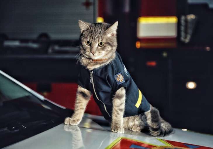 В одной из частей ГСЧС Киева живет кот со званием майора. Зимой его приютил начальник части, и с тех пор пушистый спасатель получил не только крышу над головой, но и рабочее место.