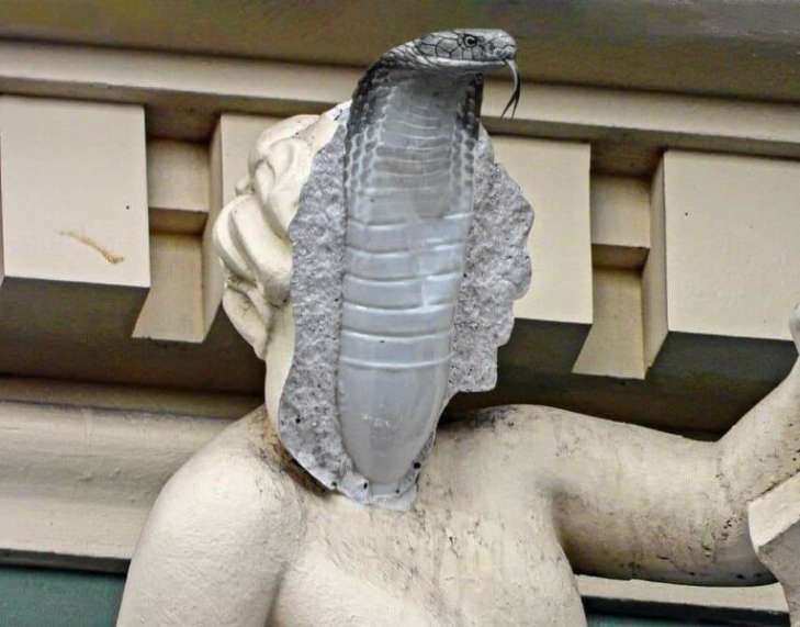 У ангела с арфой отвалилась лицевая часть головы, внутри которой теперь отчетливо видны очертания круглой пластиковой бутылки, которая служила каркасом. Фотографии уже разлетелись по социальным сетям и уже стали источником для множества мемов. Некоторые увидели в бутылке очертания кобры, а другие "примерили" ее на лицо мэра Одессы Геннадия Труханова.