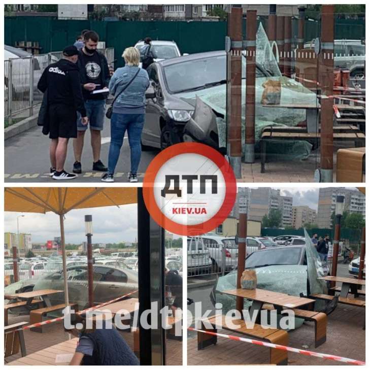17 мая, на Окружной дороге в Киеве водитель "Хонда Сивик" протаранил столики на летней площадке ресторана фаст-фуда "МакДональдс".