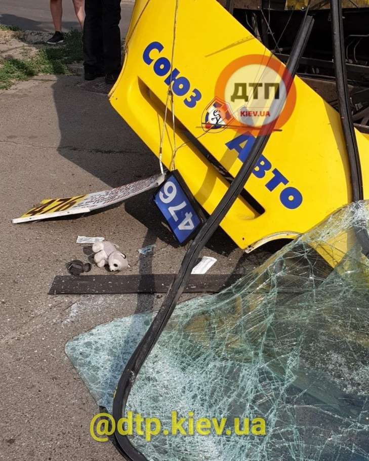 В Киеве маршрутка с пассажирами на полной скорости врезалась в столб, есть пострадавшие.