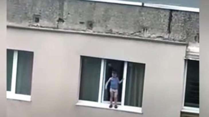 Видео было опубликовано в социальной сети с указанием адреса. Выяснилось, что четырехлетний ребенок находился на подоконнике на девятом этаже.