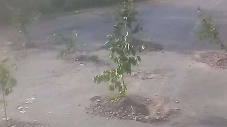 Жители Киевской области «отремонтировали» себе трассу. В селе Селище они засыпали ямы почвой и высадили в них саженцы вишни. Так решили привлечь внимание к разбитых дорог.