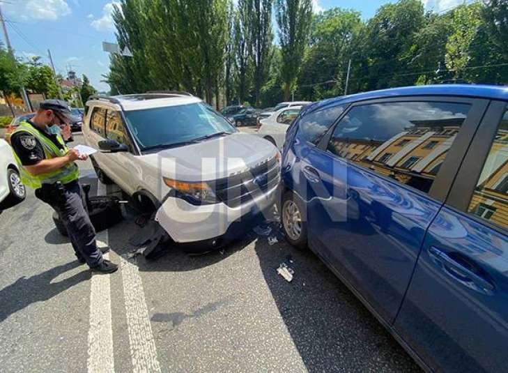В Киеве Mercedes на большой скорости оторвал колесо внедорожнику Ford, стало причиной ДТП на бульваре Тараса Шевченко с участием 5 автомобилей, передает УНН.