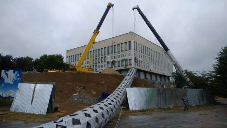 «Ця стропа була новою, придбаною спеціально для монтажу цього об‘єкту компанією, яка повинна була його встановити. Зараз проблема усувається, на місце виїхали представники обласної державної адміністрації для роз’яснення причин інциденту», – написав Науменко у Facebook.