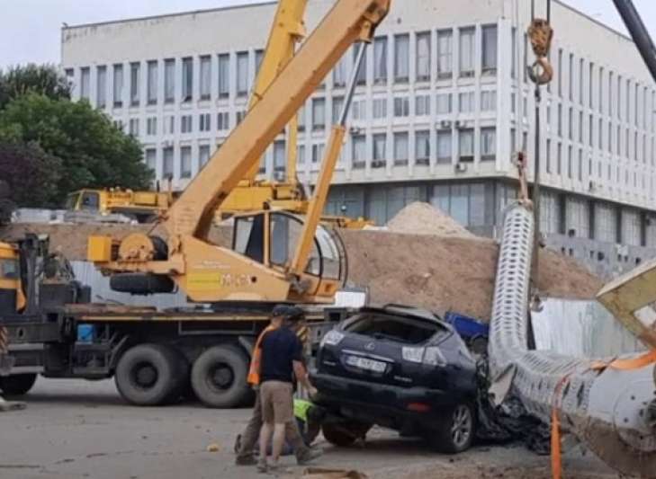 У Херсоні 70-метровий флагшток зірвався і розчавив Lexus чиновника, кий, імовірно, займається його встановленням