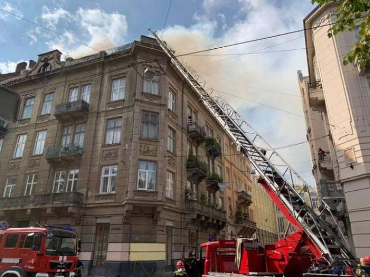 В центре Львова загорелся чердак четырехэтажного дома-памятника архитектуры местного значения, который был построен в 1911 году по проекту архитектора Людвика Теуша. .