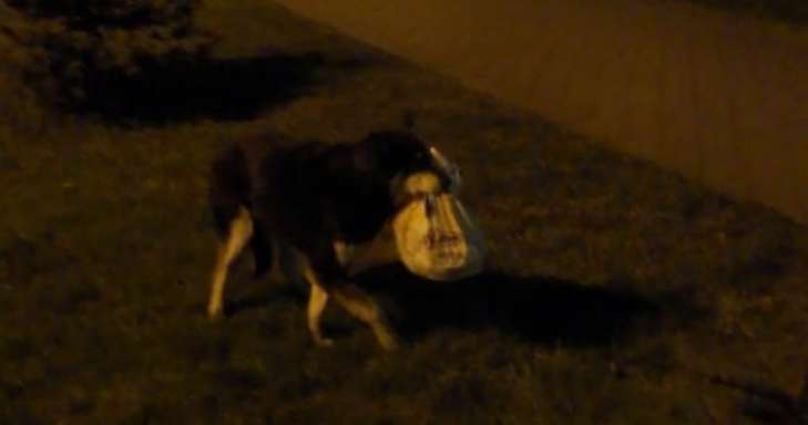 Бездомный пес похитил у компании пакет с водкой и закуской