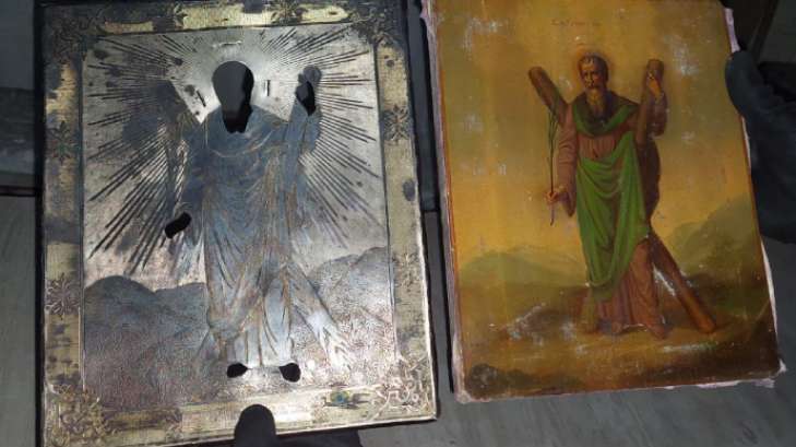 Группа досмотра обнаружила икону Андрея Первозванного в серебряной ризе, которую водитель закрепил клейкой лентой на спине под одеждой.