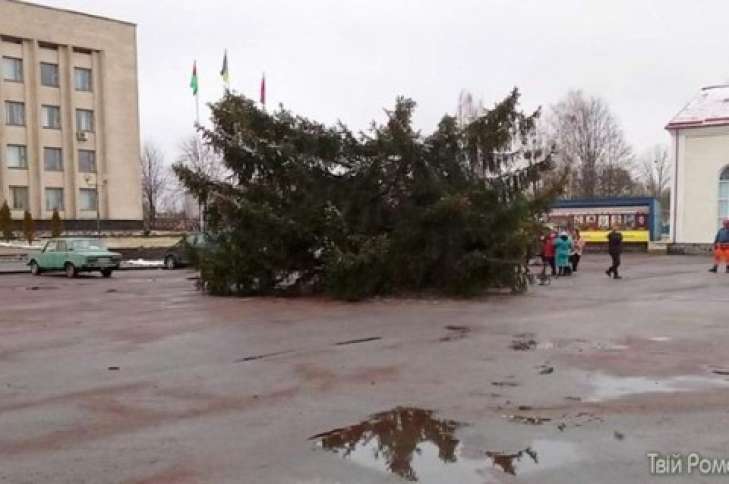 На центральной площади города Романово Житомирской области упала новогодняя елка. Местные власти теперь ищут новую, поскольку открытие запланировано на 19 декабря.