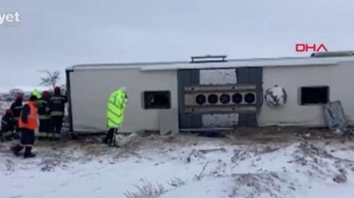 Автобус направлялся из Измира в Каппадокию. ДТП произошло на 47-м километре автомагистрали Конья-Аксарай из-за скользкой дороги. Автобус вылетел из проезжей части и опрокинулся. На момент аварии в автобусе находились 47 человек, среди которых двое водителей.