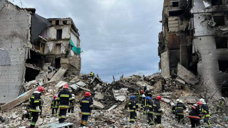 В місті Бородянка під Києвом рятувальники ДСНС почали розбирати завали розбомблених будинків. Про це у соцмережі повідомив журналіст Роман Бочкала.