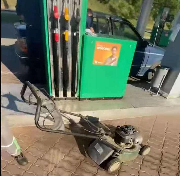 Чоловік привіз на заправку газонокосарку, через нові правила (відео)
