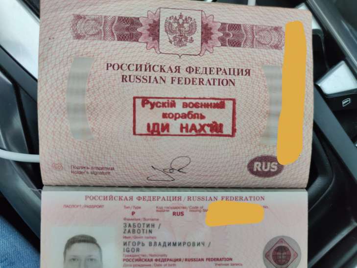 Украинские пограничники поставили россиянину в паспорте штамп "русский военный корабль иди…" (видео)