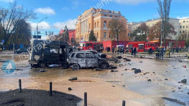 "По состоянию на 08:45 в результате обстрела в Шевченковском районе погибли 8 человек и 24 травмированы, возник пожар шести автомобилей и более 15 авто повреждены. Привлечены 30 человек и 6 единиц техники", - говорится в сообщении.