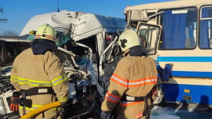 До місця аварії виїхали пожежно-рятувальні підрозділи на спеціальних автомобілях. За попередньою інформацією, 1 особа загинула (пасажирка "Фольксваген"), станом на 11:00 - до лікувальних закладів госпіталізовано 18 осіб. Інформація щодо кількості постраждалих уточнюється.