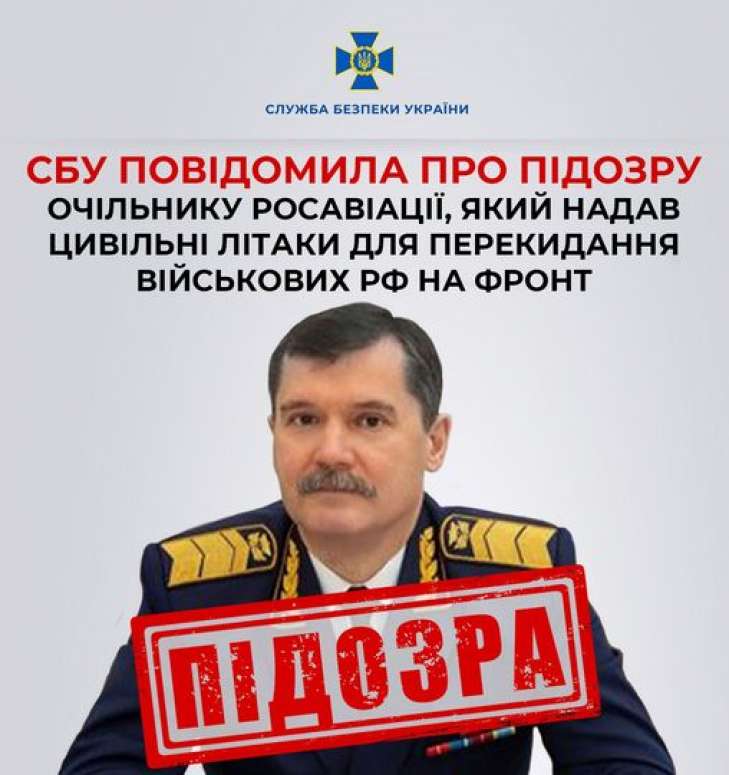 Очільнику росавіації, який надав літаки для перекидання військових рф на фронт, повідомили про підозру
