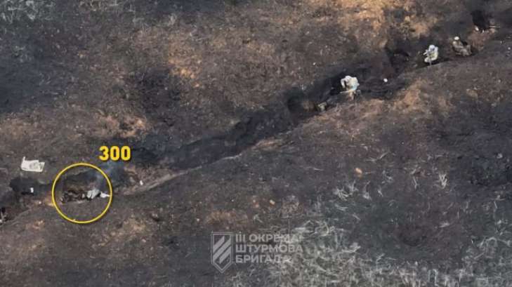 Условия штурма – сложный участок фронта, враг блокирует связь, а бои происходят в мокрых земляных траншеях. Выполняет 1-й штурмбат Третьей штурмовой бригады".
