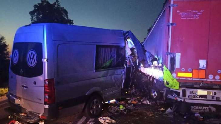 Він додав, що після аварії вісім громадян України, які їхали в автобусі, були доставлені до лікарні. Після обстеження у двох осіб були виявлені тілесні ушкодження, додав речник поліції.