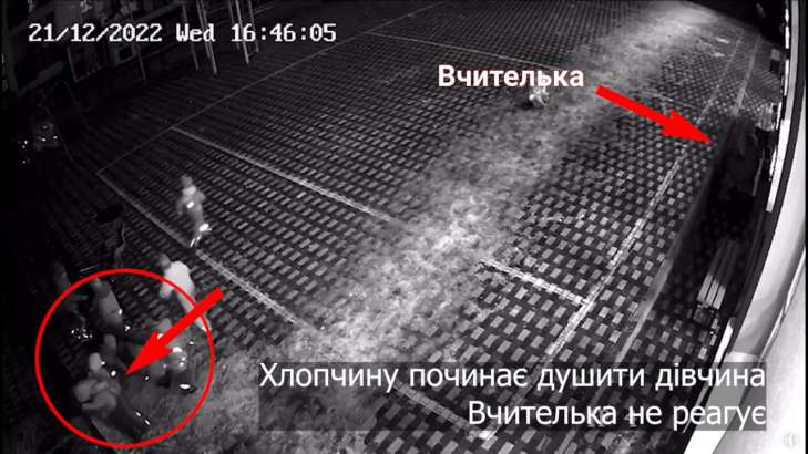 На записі з камер видно, що побиття дитини відбувалося протягом п’яти хвилин. Мама постраждалого хлопчика каже, що за цей час не було жодної реакції від вчителів школи. За словами Валерії Татарчук, коли її сина били, вчителька сиділа поруч і була зайнята своїми справами в телефоні.