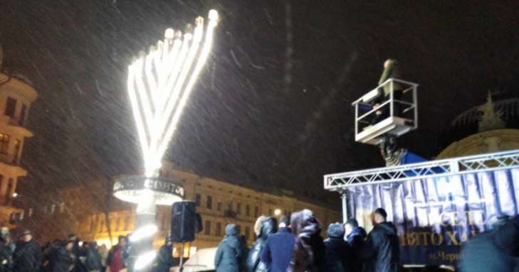 У Чернівцях на Театральній площі урочисто запалили першу ханукальну свічку на честь єврейського свята Хануки, повідомляє molbuk.ua.