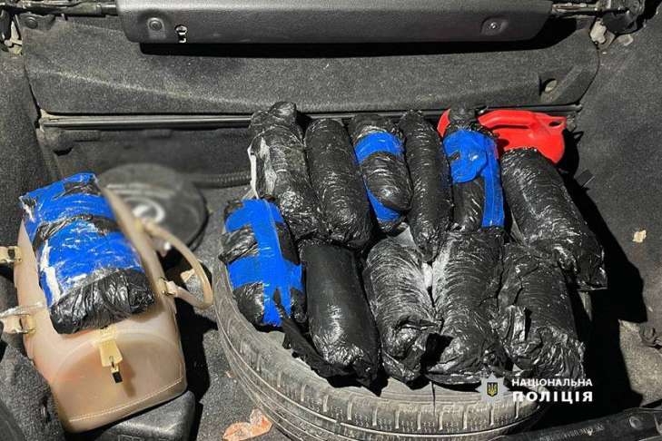 Під час огляду транспортного засобу у покришці запасного колеса поліцейські виявили 11 поліетиленових пакунків. Ще один пакунок знаходився у жінки в сумці. Загалом у порушниці вилучили 12 пакунків із забороненою речовиною вагою близько 12 кг. Тепер їй загрожує до 12 років позбавлення волі та конфіскація майна.