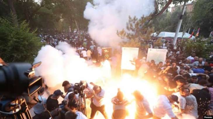 Під час чергової антиурядової демонстрації під будівлею парламенту Вірменії в Єревані протестувальники почубились із поліцією, в результаті чого є поранені з обох сторін і затримані.