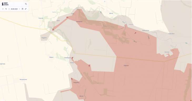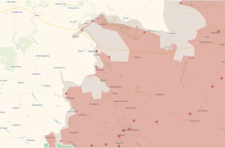 DeepState фіксує, що армія рф просунулась одразу на шести ділянках на півдні Донеччини на кордоні з Дніпропетровщиною - від Шевченка (про захоплення якого ще кілька днів тому заявили росіяни) до Ялти. Саме біля Ялти, поблизу дніпропетровського села Дачне, вказано "сіру зону".