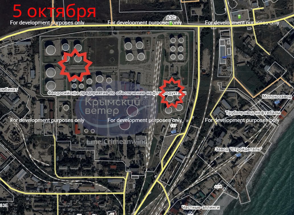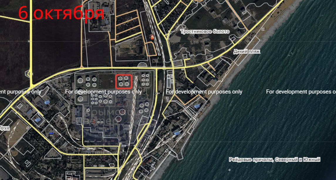По данным аналитиков, 6 октября горели цистерны в северо-западной и восточной частях объекта. Свежие спутниковые снимки свидетельствуют о том, что сегодня пламя охватило резервуары уже в северной части нефтебазы.