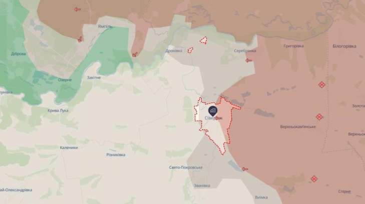 У районі Сіверська на Донеччині ускладнюється ситуація. Противник продовжує затягувати свою піхоту в місто і наразі ситуація розгортається не найкращим чином, адже Сіверськ потроху переходить в руки ворога. Про це повідомляють аналітики DeepState.