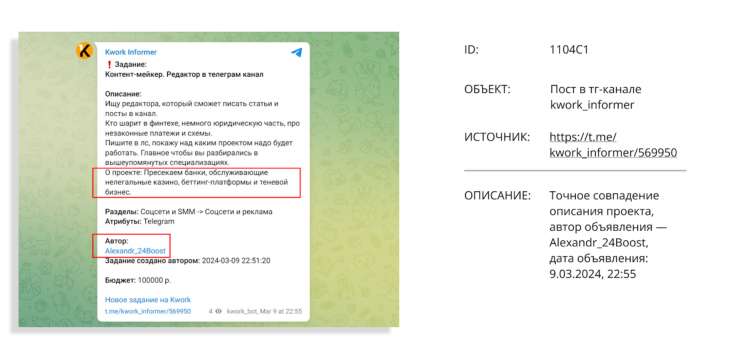 Далее была выполнена проверка других объявлений, размещенных от лица пользователя Alexandr_24Boost. Были найдены форумы, которыми пользовался этот человек под другими никнеймами. Например, на форуме zelenka.guru был найден пользователь Bellatrix, тексты объявлений которого совпадали с текстами Alexandr_24Boost.