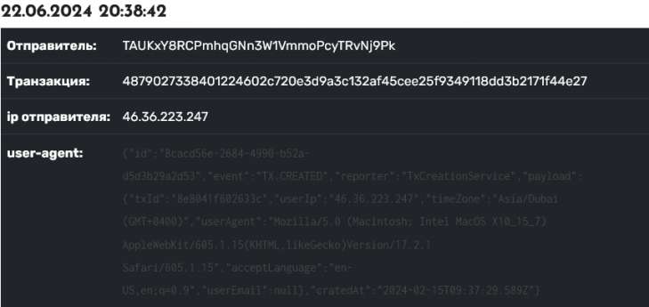 3. После обмена Артюхов пополнил аккаунты сервиса виртуальной телефонии через платёжный шлюз, который подтвердил получение транзакций от адреса TAUKxY8RCPmhqGNn3W1VmmoPcyTRvNj9Pk.Назначение платежей — оплата услуг виртуальной телефонии