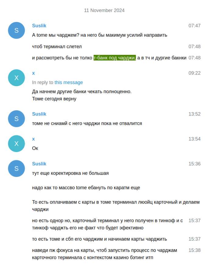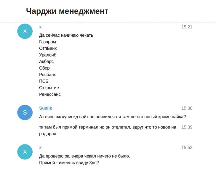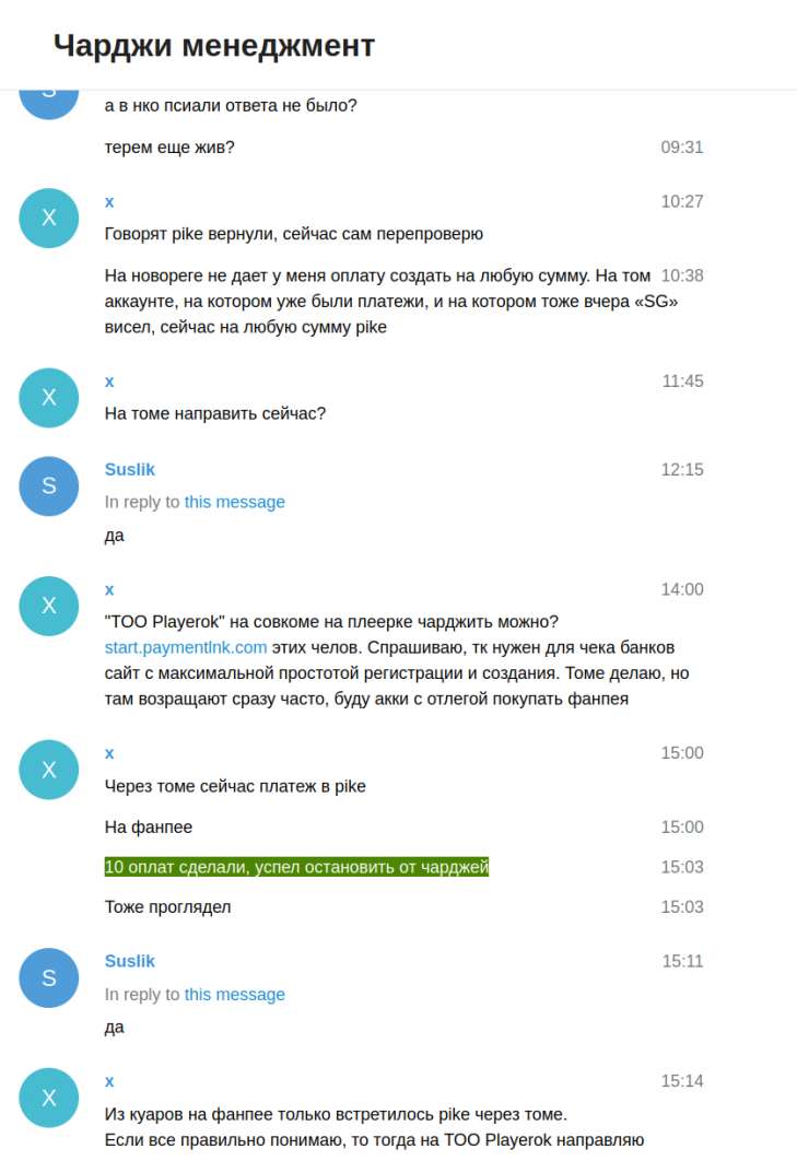Владельцы «Платежного щита» скрывали проект по чарджингу не только от широкой публики, но также от основного штата парсеров. Sultan в групппе «Чарджи менеджмент» внимательно следил, чтобы сообщения для банков, отличались по структуре и содержанию от сообщений, которые отправлялись регуляторам в рамках основного проекта по «пресечению банков».