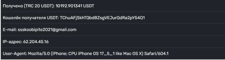 - Подтверждено, что оператор цифровых финансовых потоков ОПС Platshit перевел на указанный адрес не менее 40 000 USDT, что зафиксировано в транзакции: https://tronscan.org/#/transaction/11084ffb77935b516b0dbf21a83a8fe3c48a82bbf38c45913268e2fb1edf3d4d.