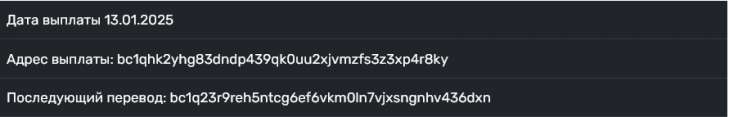 Анализ транзакции, связанной с выплатой выкупа, произведённой 13.01.2025 на адрес bc1qhk2yhg83dndp439qk0uu2xjvmzfs3z3xp4r8ky, и с которого средства были переведены на адрес bc1q23r9reh5ntcg6ef6vkm0ln7vjxsngnhv436dxn