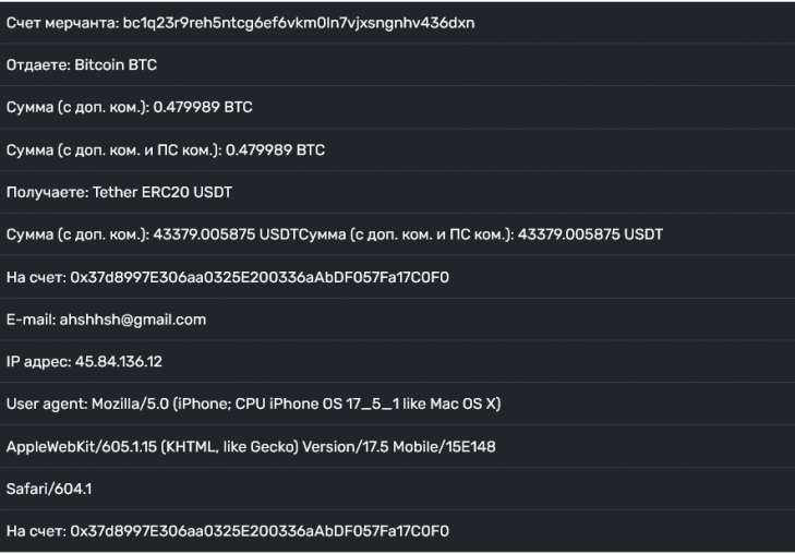 В связи с этим, к «обменному сервису Б» был направлен запрос по ранее установленным email адресам exchngeme@proton.me и user-agent, которые использовали злоумышленники для разблокировки средств.