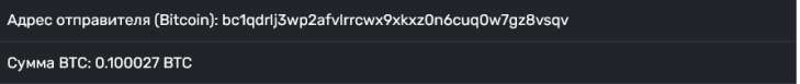 Упомянутый выше обменный сервис по этим данным подтвердил наличие совпадений с другими прошедшими через него заявками. Среди представленных заявок, особое внимание привлекла заблокированная транзакция