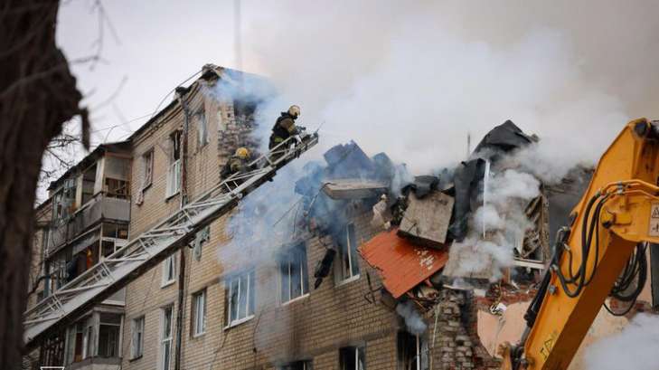 Ракета попала непосредственно в пятиэтажный жилой дом. В результате удара был фактически разрушен один из подъездов здания, возник масштабный пожар.
