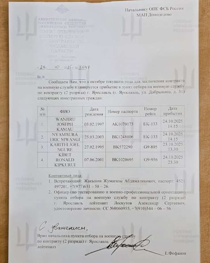 За даними розвідки, він прибув до Росії восени 2025 року разом з іншими громадянами Кенії, підписав контракт і після короткої підготовки був відправлений на фронт.