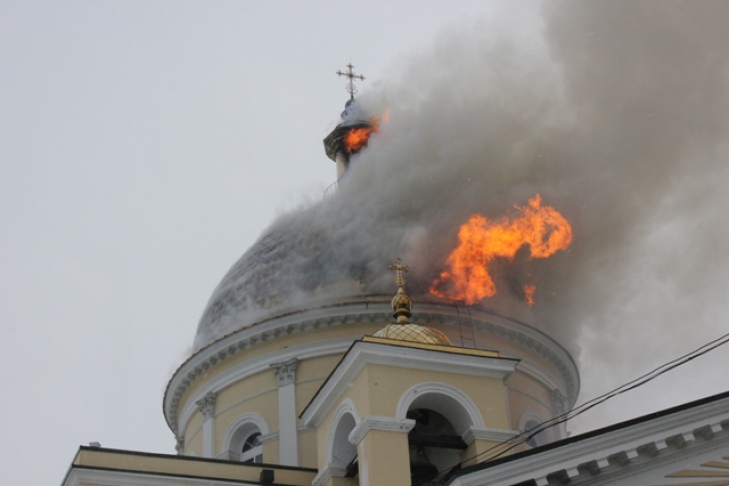 Обогревателем рабочие сушили купол храма