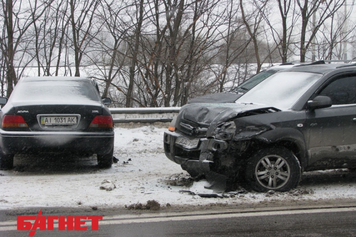 Во вторник, 14 февраля, на новой обуховской дороге при подъезде к Киеву столкнулись Acura и Hyundai Tucson. Как выяснилось - люксовый седан двигался в направлении Киева. На затяжном спуске водитель на скользкой дороге не справился с управлением, автомобиль развернуло боком и вынесло на полосу встречного движения, где он врезался в двигавшийся навстречу внедорожник Hyundai. После столкновения Acura врезалась в разделительный отбойник.