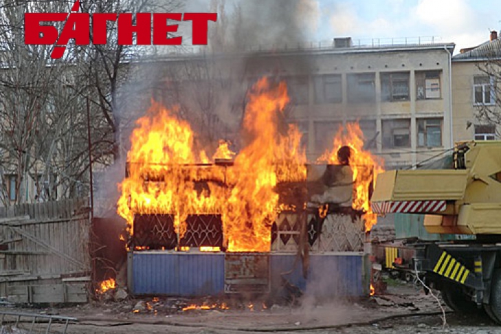 Горевшая в центре Севастополя строительная бытовка едва не сожгла автокран (ФОТО)
