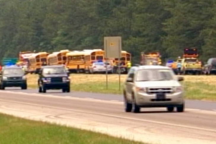 Шесть школьных автобусов столкнулись недалеко от Атланты (штат Джорджия, США), - сообщают зарубежные СМИ. Как сообщается, шесть автобусов столкнулись, когда везли детей на прогулку в один из национальных парков. При движении на трассе первый автобус резко сбавил скорость ввиду возникновения непредвиденного препятствия, в результате чего все пять следующих за ним не избежали столкновения по принципу цепной реакции. Последним в цепи столкновений стал уже не автобус, а легковой автомобиль.