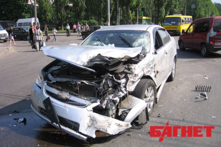 От удара Таврия вылетела на перекресток с разодранным боком, а Audi выскочила на полосу встречного движения где сначала стукнула в лоб идущий навстречу Chevrolet, а затем, отлетев, врезалась в Nissan.