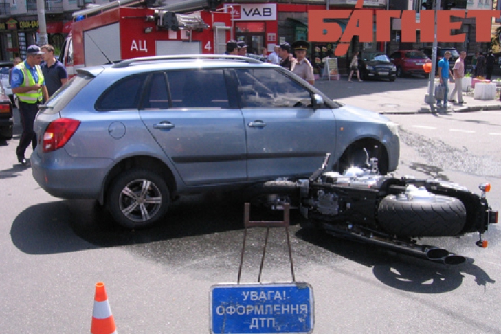 В результате, байкер перелетел через капот легкового автомобиля